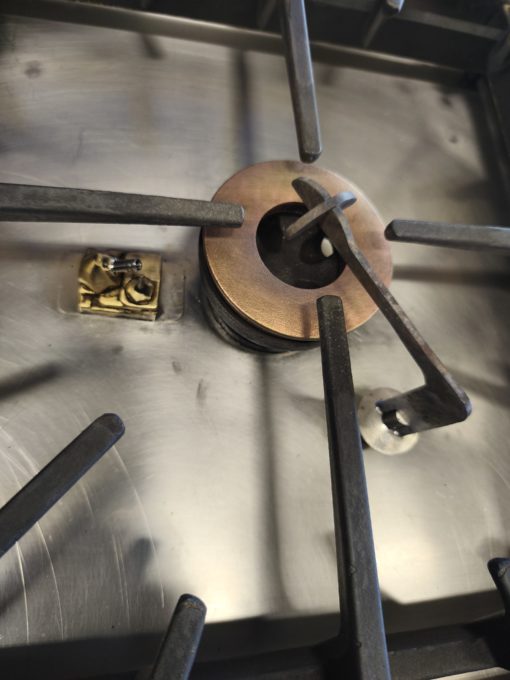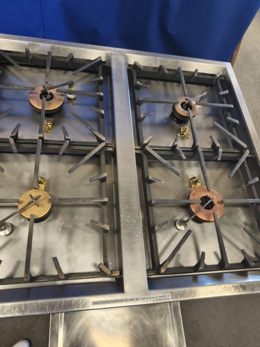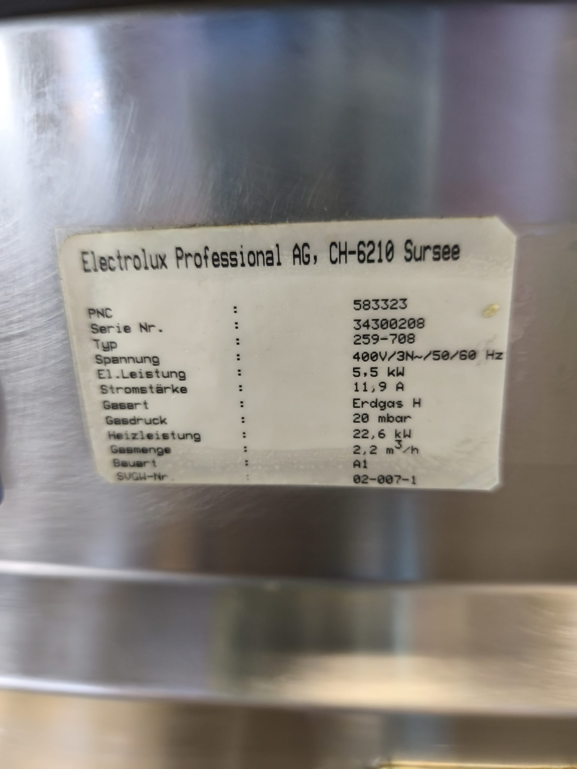 Gasleistung 22,6 kW, elektr. Leistung Backrohr 5,5 kW/16 A, autom. Topferkennung, heißt: wenn der Topf weggenommen wird, geht die Flamme automatisch auf Pilot-Flamme zurück,