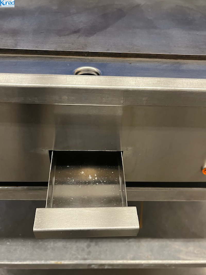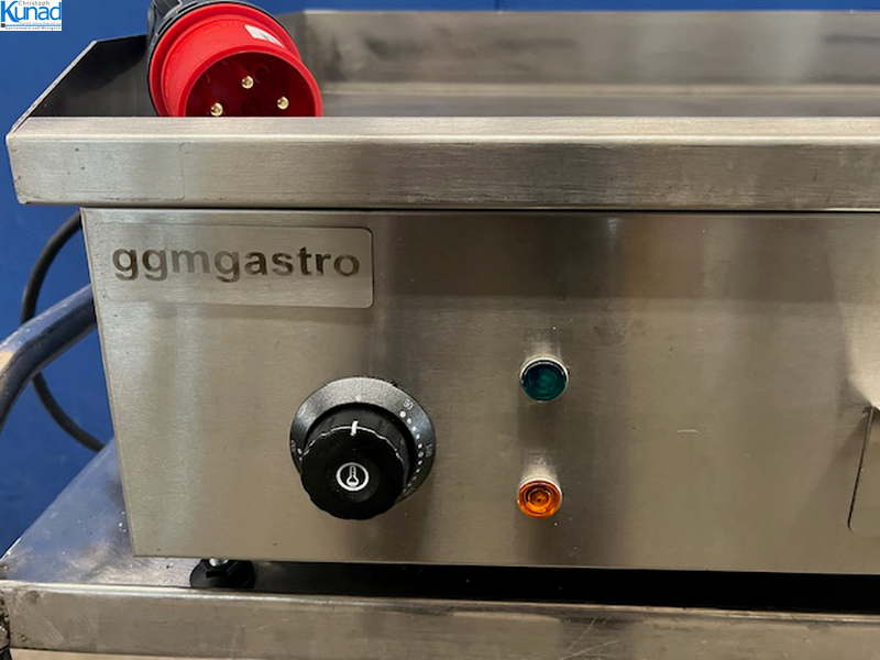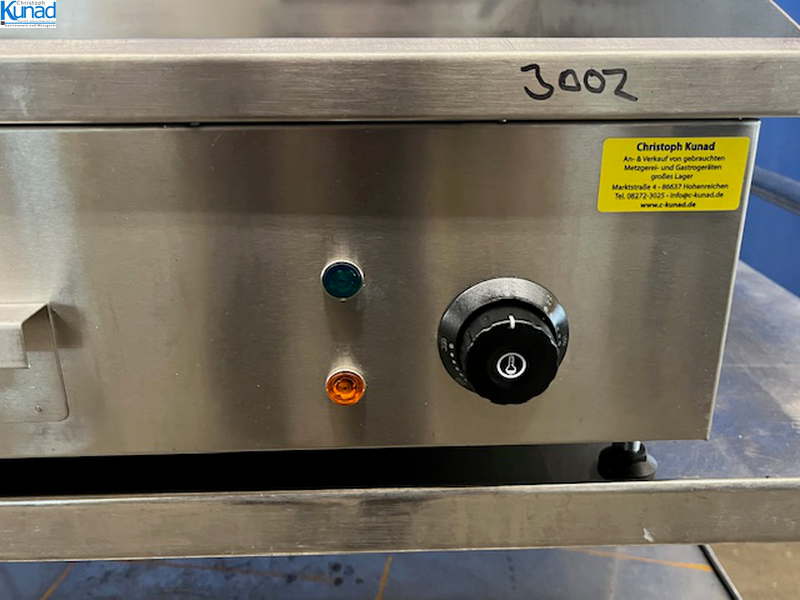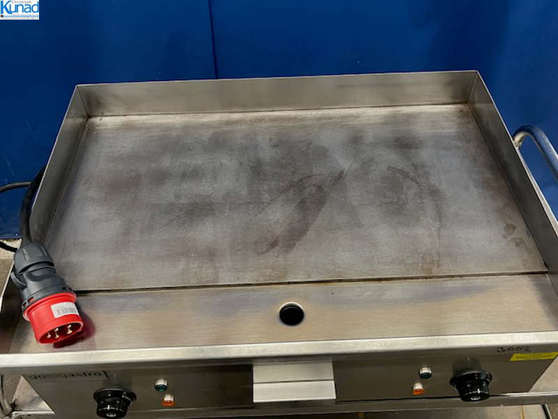 Bratfläche 73×40 cm, 2 Heizzonen getrennt regelbar, Temperaturen von 50°C – 300 °C, Fettauffangbehälter, 400 V, 4,4 kW, 10 A