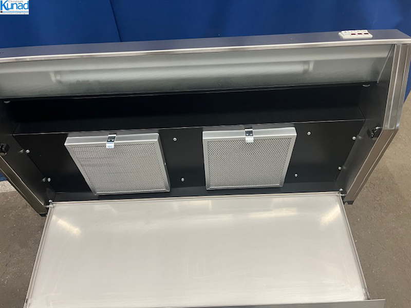 230 V, 0,2 kW, 1 A, mit 2 eingebauten Gebläse-Motoren, mit 3-Schalt-Stellungs-Regler, Beleuchtung, Kontroll-Lampe, CNS-Bodenplatte und Fettfiltern, leistungsstark und langlebig, incl. Abluftrohre