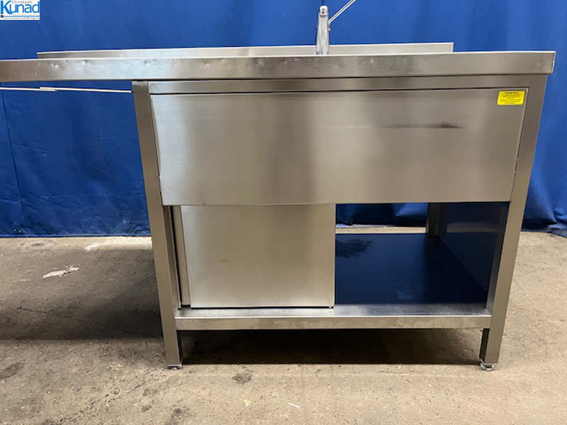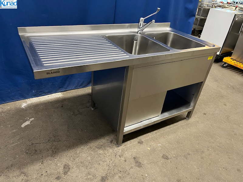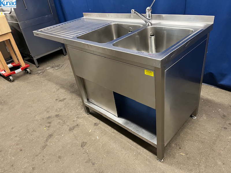 2 Becken rechts 40x50x25 cm, Abtropffläche links und Spülmaschinenrücksprung 60 cm, mit Armatur, 1 Schiebetüre