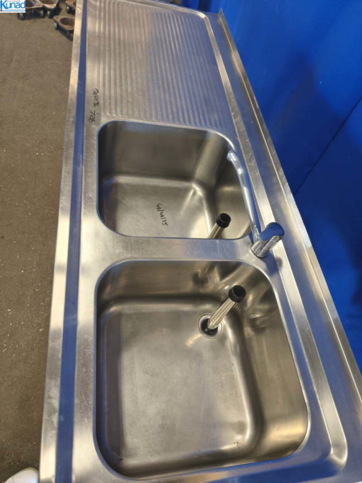 2 Becken rechts 40x40x25 cm, Abtropffläche links, Mischarmatur