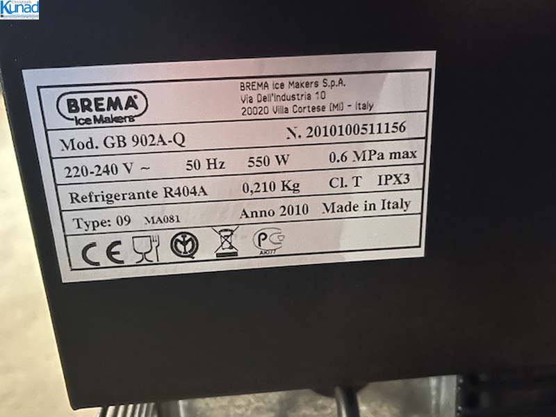 leicht zu reinigender Luftfilter, auch für warme Küchenbereiche geeignet, mit Schlauch für Zu- und Abwasser, Stellmaß 50x66x83 cm, 230 V, 0,55 kW, 2,5 A, Kühlmittel R404a, Neupreis 3940,00 €