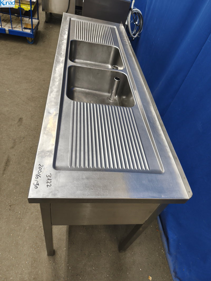 2 Becken 40x40x20 cm mittig, Abtropffläche links und rechts, Aufkantung hinten