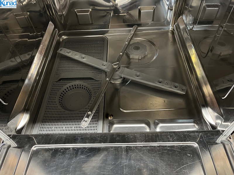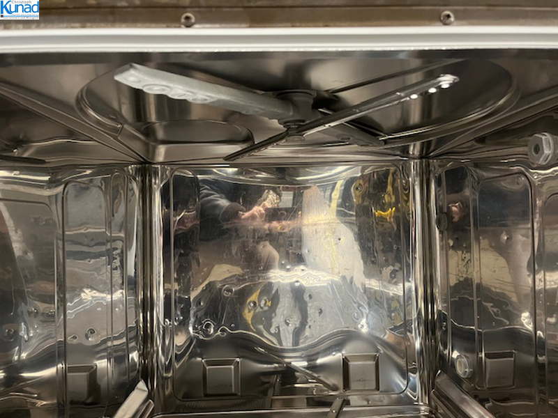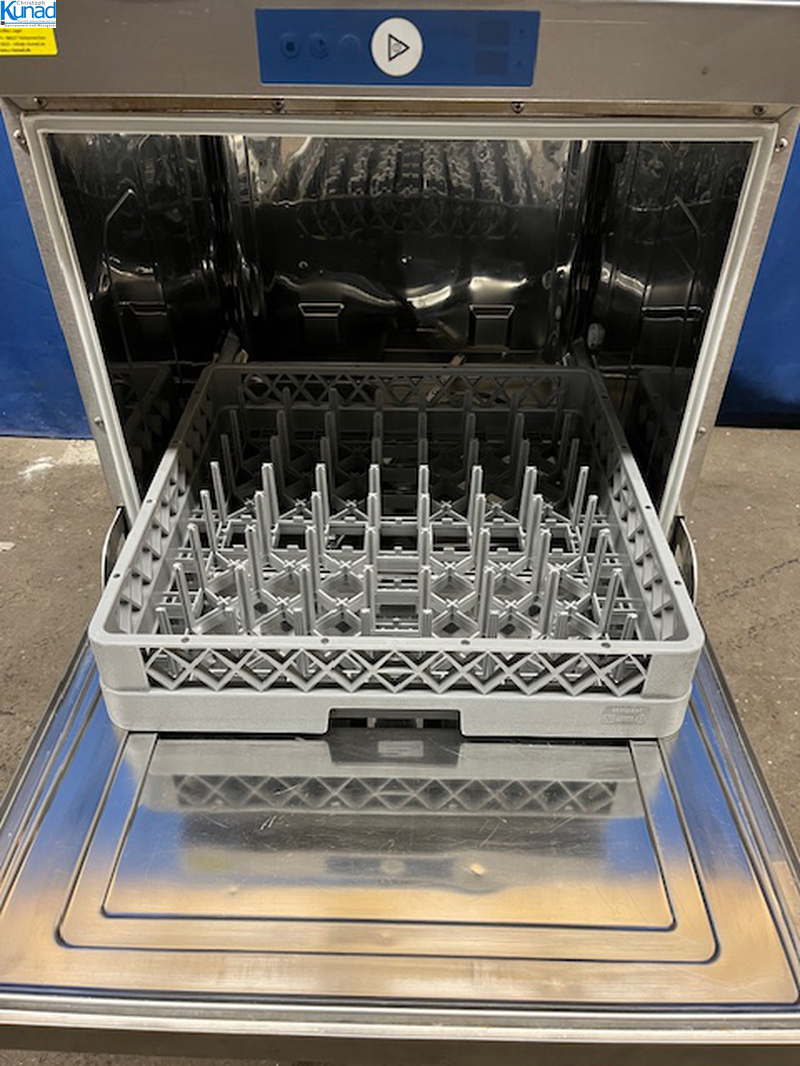 400 V, 7,6 kW, 15,8 A, Stecker 16 A, für Korbgröße 50×50 cm, max. Einschubhöhe 39 cm, mit Spülzeiten 90/180/380 sec., und Hygieneprogramm, mit eingebauter Reiniger- und Klarspüldosierung, eingebaute Enthärtung und Abpumpfunktion, Stellmaß 60x60x83 cm