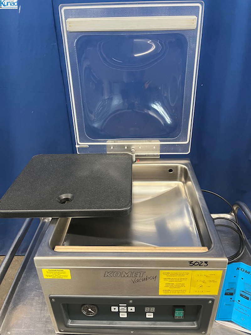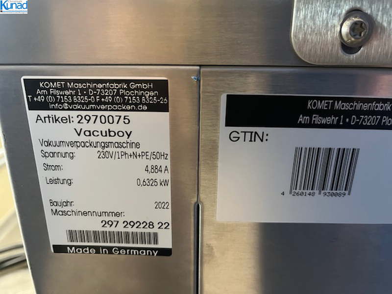 230 V, 0,63 kW, 4,88 A, Plexiglas-Deckel, Kammergröße 36x38x15 cm, mit Einlegeplatte, Schweißbalken 34 cm, Buschpumpe 10m³/h, Stellmaß 42x47x35 cm, Gewicht 40 kg